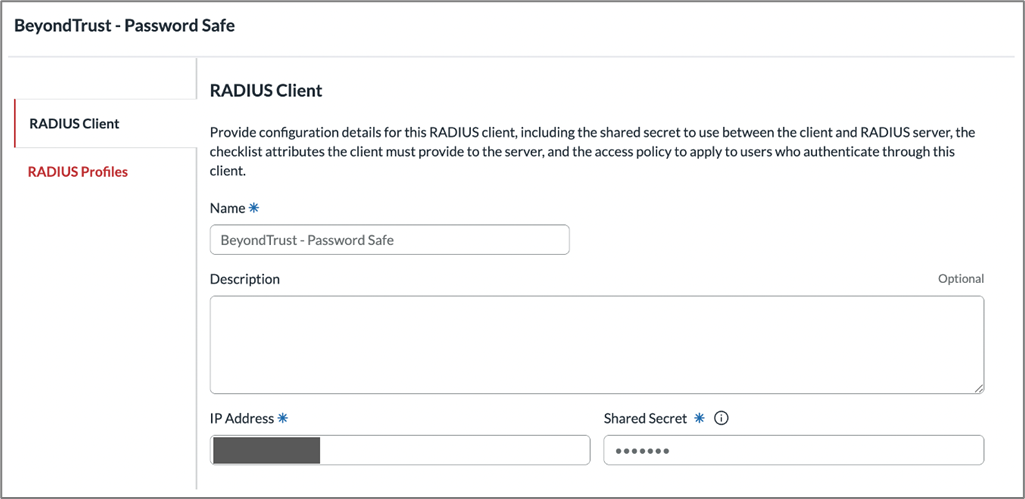 - Shared Secret: Create and enter a secure shared secret. This secret will be used for secure communication between the RADIUS client and the RADIUS server.