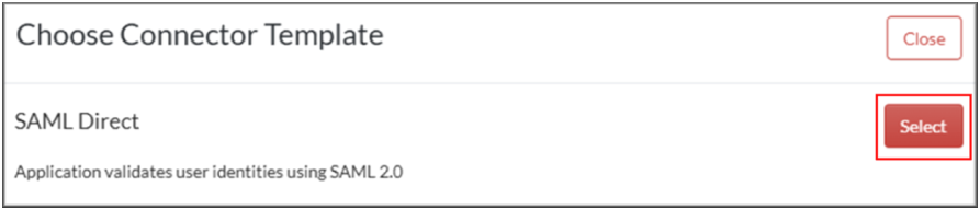 - Click Create from Template, and then click Select next to SAML Direct.