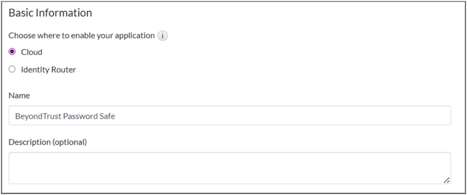 - On the Basic Information page, choose Cloud.