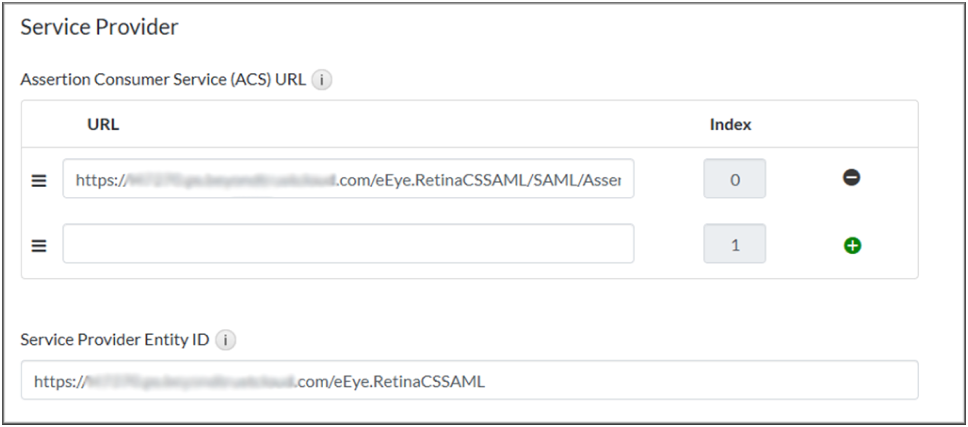 - Service Provider Entity ID: https://< beyondinsight-domain-name>/eEye.RetinaCSSAML