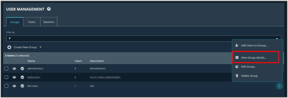 - To enable Password Safe, select the required group from the list, click the three dots next to it, and choose View Group Details.