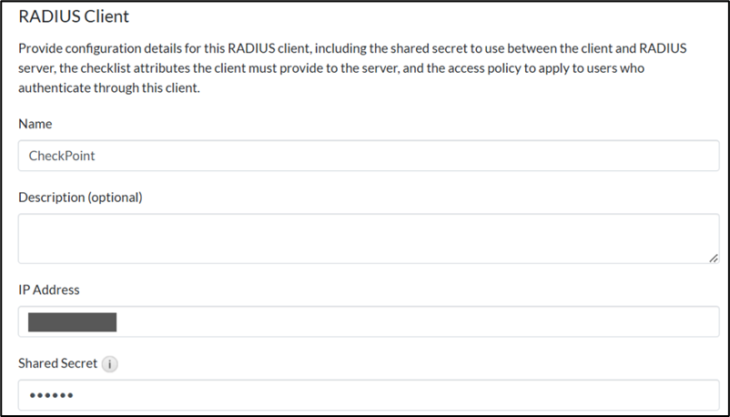 - Shared Secret: Create and enter a secure shared secret. This secret will be used for secure communication between the RADIUS client and the RADIUS server.