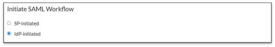 - On the Connection Profile page, navigate to the Initiate SAML Workflow section and choose IdP-initiated.