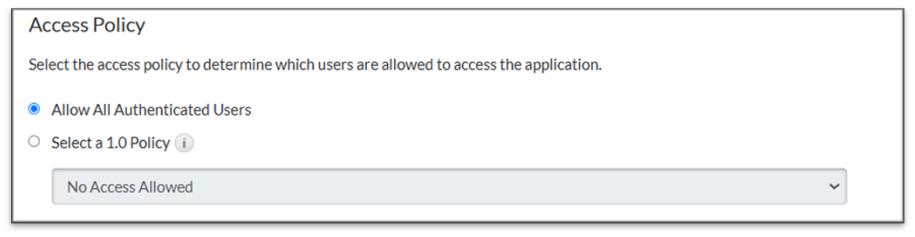 - On the User Access page, select the access policy that the identity router will use to determine which users can access the application.