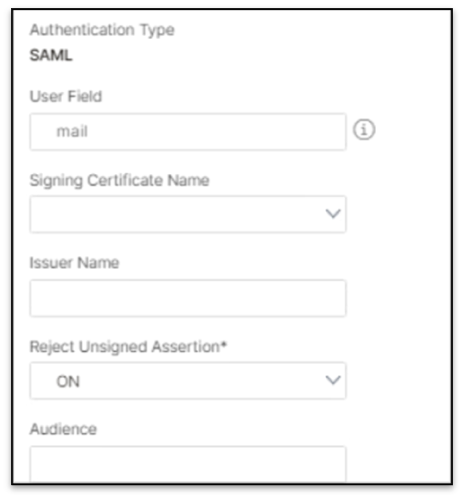 - ACS URL: The format is https://<ns_vs_hostname>/cgi/samlauth. Replace <ns_vs_hostname> with the hostname or IP address of your NetScaler virtual server, which can be obtained from the Citrix NetScaler configuration.