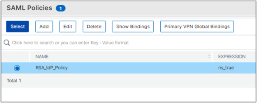 - Browse to Configuration > NetScaler Gateway > Policies > Authentication > SAML and click Add.