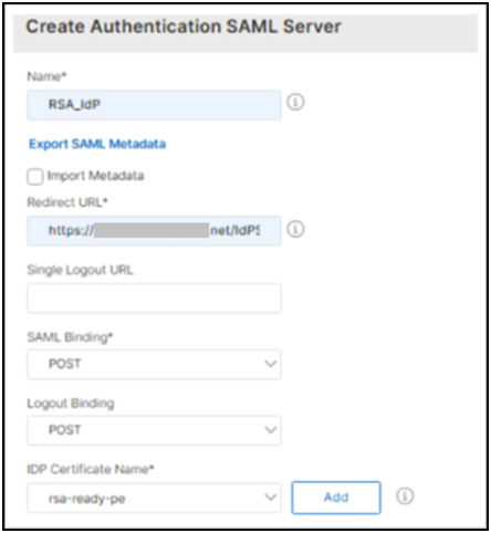 - In the Redirect URL field, enter the Identity Provider URL that was provided in the RSA Cloud Authentication Service configuration.