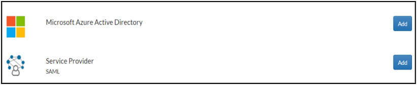- On the Relying Party Catalog page, click Add for Service Provider SAML.