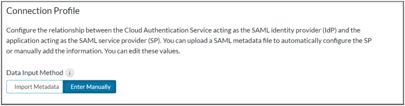 - On the Connection Profile page, choose Enter Manually for Data Input Method.