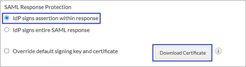 - Under the Message Protection, in the SAML Response Protection section, choose IdP signs assertion within response.