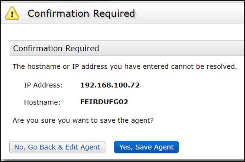 - Click Save & Create Associated RSA Agent > Save > Yes, Save Agent.