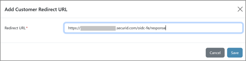 - Paste the Redirect URI value copied from the RSA configuration into the Redirect URL field and click Save.