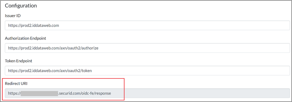 - At the time of testing this document, the well-known URL used for the production is https://prod2.iddataweb.com/axn/oauth2/.well-known/openid-configuration. Refer to the ID Dataweb documentation for the latest well-known URLs.