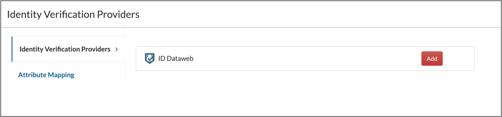 - Click the Identity Verification Providers tab and click Add against ID Dataweb.