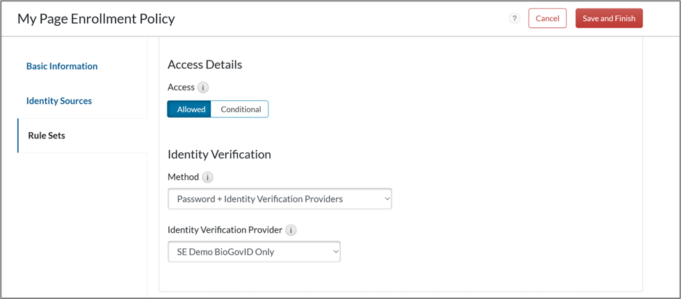 - Make applicable changes on the Rule Sets tab and select Password + Identity Verification Providers as the Method for Identity Verification.