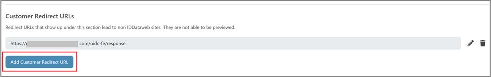 - Scroll down to the Customer Redirect URLs section and click Add Customer Redirect URL.