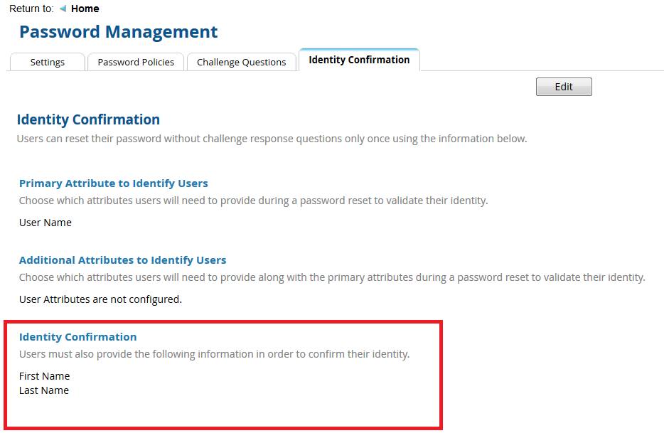 Identity Confirmation attributes will be displayed if the Challenge questions and answers are not enrolled by the user.