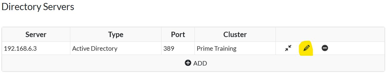 - In the table that contains all the domain controllers listed for this Active Directory, edit each connection to change the binding account or its password.