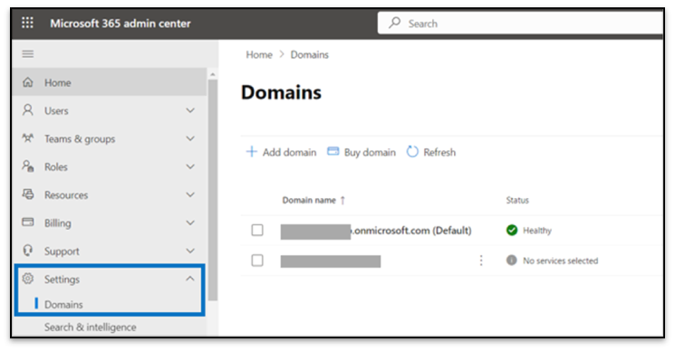 - Go to Settings > Domains > Add domain to verify your custom domain name which should be federated.