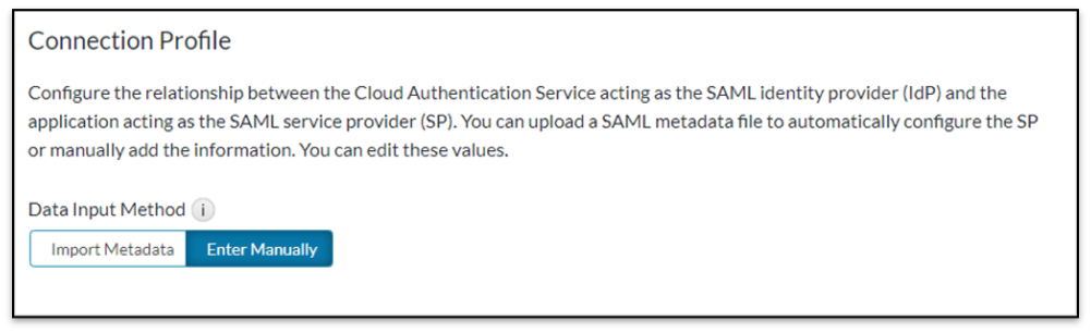 - On the Connection Profile page, navigate to Data Input Method and select Enter Manually