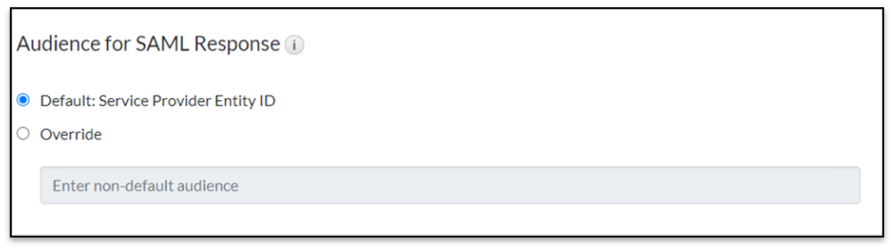 - Audience for SAML Response: Keep the Audience for SAML Response unchanged as it remains the default setting.
