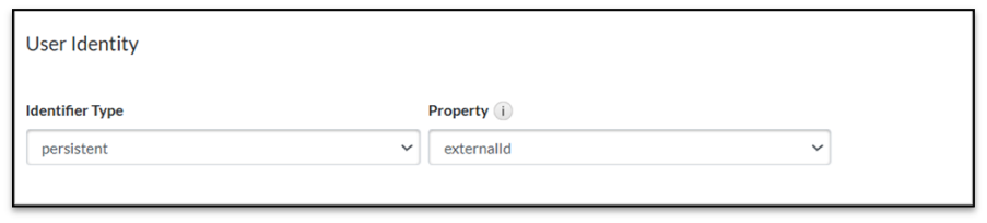 - In the User Identity section, select persistent from the Identifier Type dropdown list.