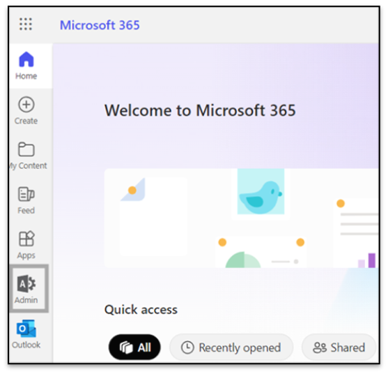 - You will be redirected to Microsoft 365 admin center.