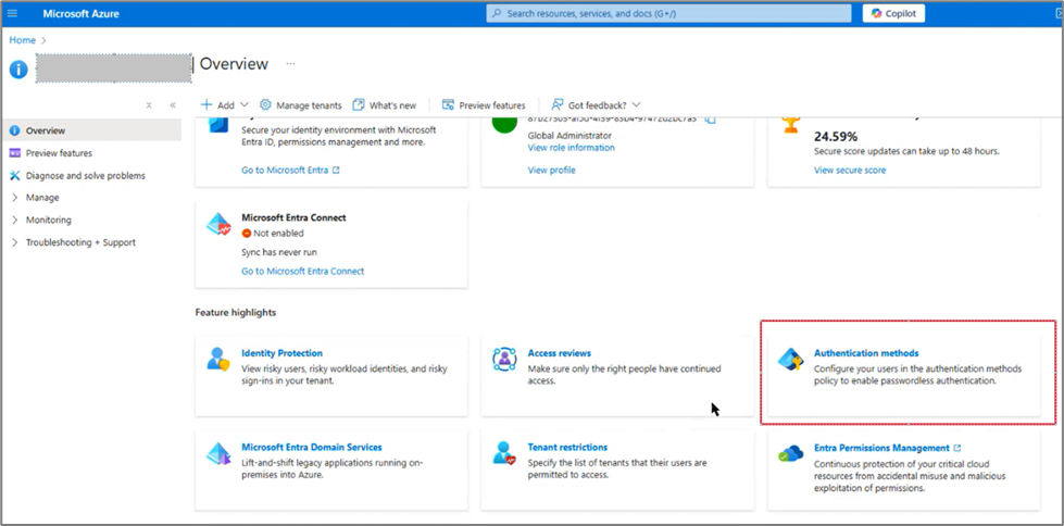 - Select Authentication methods.