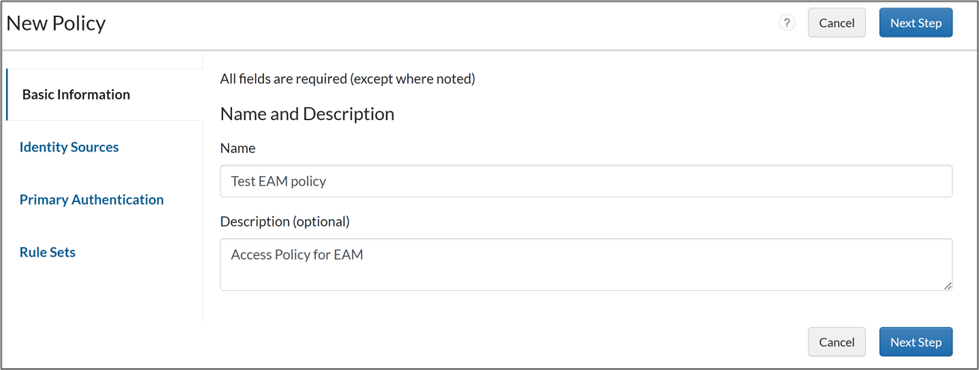 - On the Basic Information page, provide a name for your policy.