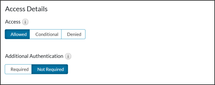 - In Access Details subsection ,if Access is selected as Allowed, skip this step.