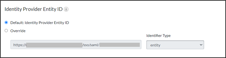 - In the Identity Provider Entity ID section, select Default and leave the other value as it is.