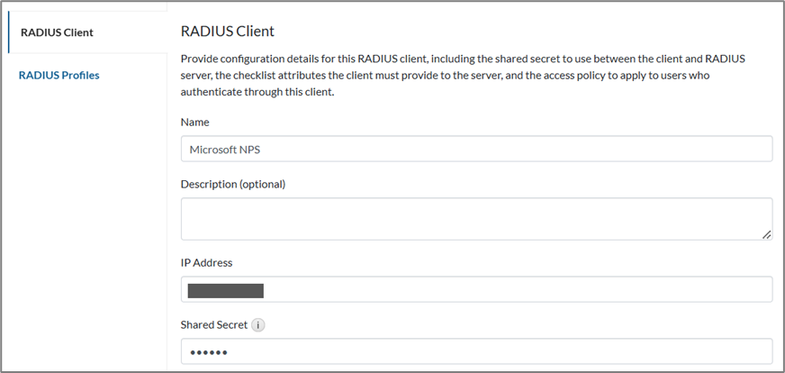 - Shared Secret: Create and enter a secure shared secret. This secret will be used for secure communication between the RADIUS client and the RADIUS server.