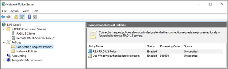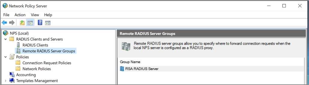 This RADIUS Client will send the request to NPS that will be later proxied by NPS to RSA RADIUS server for authentication.