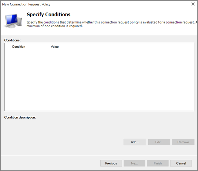 Perform these steps to configure Microsoft NPS as a RADIUS client to RSA Cloud Authentication Service and to configure the Connection Request Policy in NPS.
