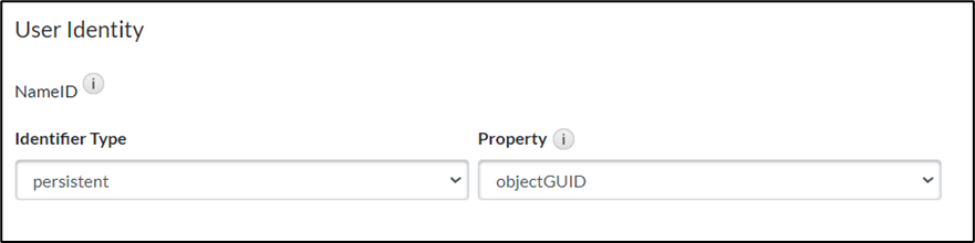 - In the User Identity section, select persistent from the Identifier Type dropdown list.