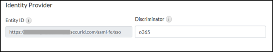 Note: The discriminator will be appended to the end of the Entity ID URL. Make sure to copy the value in the Entity ID field, as it will be required for the Microsoft O365 configuration.