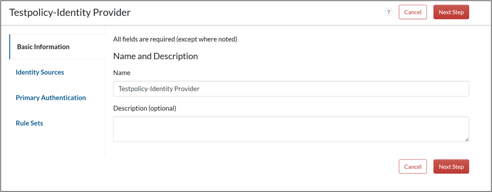- On the Basic Information page, provide a policy name and click Next Step.