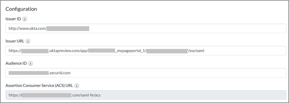 - In the Issuer ID field, enter the value of the Issuer ID provided by Okta: http://www.okta.com/AccountID. This is the value of Issuer copied from Okta.