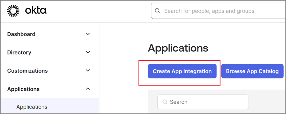 - Perform the following steps to create a new application in Okta.