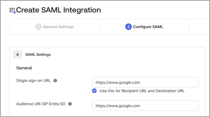 - Copy the Assertion Consumer Service (ACS) URL and Audience ID to be used in the Okta configuration.