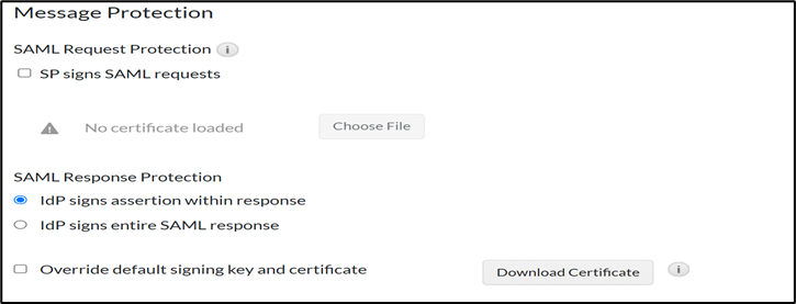 - IdP Signature Certificate – Upload the downloaded certificate from RSA.