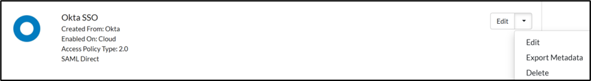 - Locate the application just created in My Applications page and click the dropdown arrow next to Edit > Export Metadata.