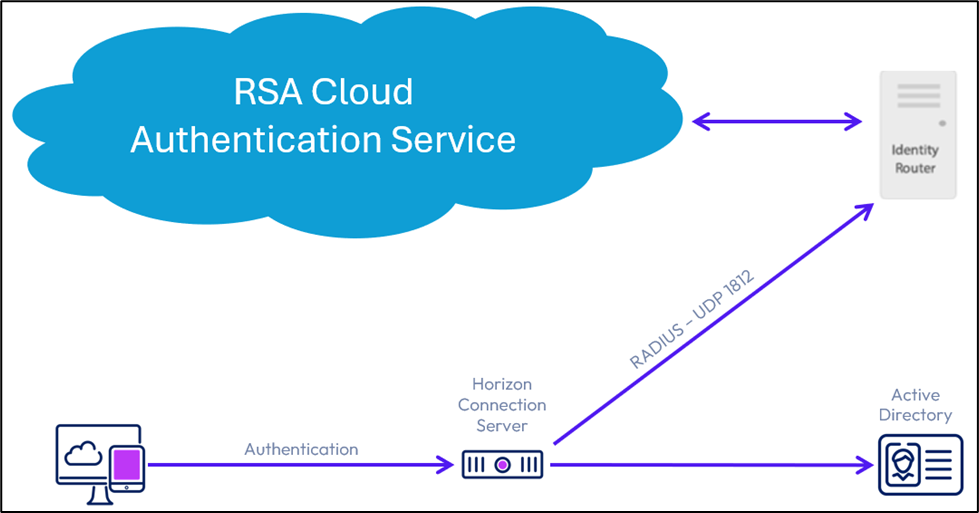 If Horizon 8 provides services to users coming from untrusted or public networks such as the Internet, consider using Omnissa Unified Access Gateways (UAG) configured for RSA SecurID in front of Horizon 8 Connection Servers. This scenario can be used to force RSA SecurID authentication for users accessing the Horizon 8 environment remotely. See the Omnissa Horizon 8 documentation and the Omnissa Horizon 8 Unified Access Gateway (UAG) - RADIUS with CAS Configuration - RSA Ready SecurID Access Implementation Guide for additional information.