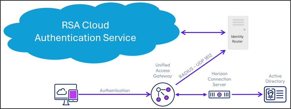 To configure RADIUS with RSA Cloud Authentication Service for Horizon 8 & Unified Access Gateways, you must first deploy at least one local Identity Router and configure a separate RADIUS client in the RSA Cloud Authentication Service for each Unified Access Gateway.