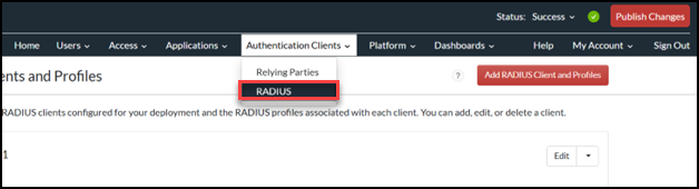 - Browse to Authentication Clients > RADIUS.