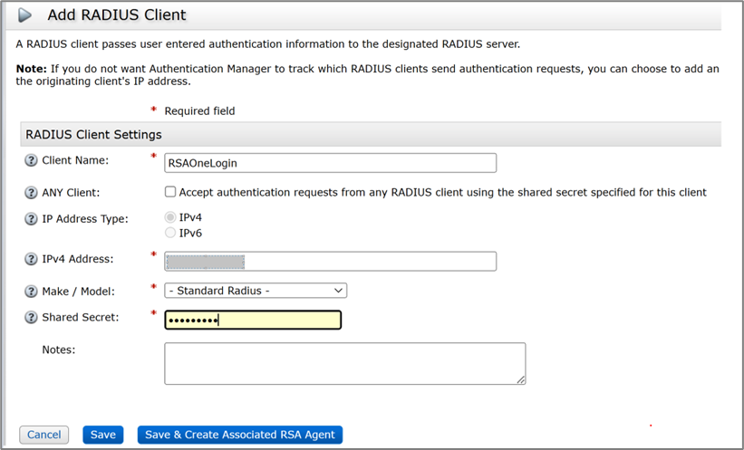 - IPv4 Address: Enter the IP address of the RADIUS client.