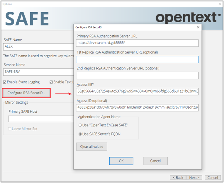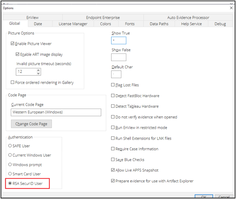 - Configure the Options in the investigative application to use RSA SecurID authentication.