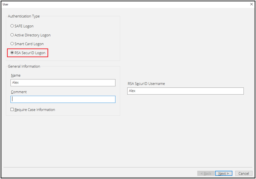 - Configure the SAFE user accounts to use RSA SecurID as an authentication method.