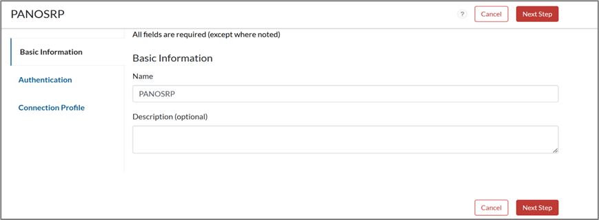- On the Basic Information page, enter the name for the application in the Name field and click Next Step.