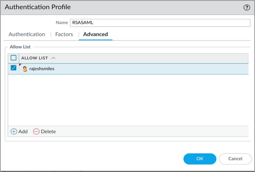 - Select the user from the list and click OK to complete the Authentication Profile.